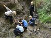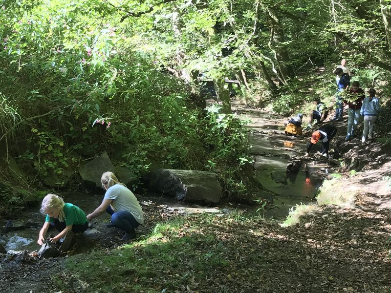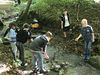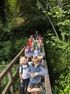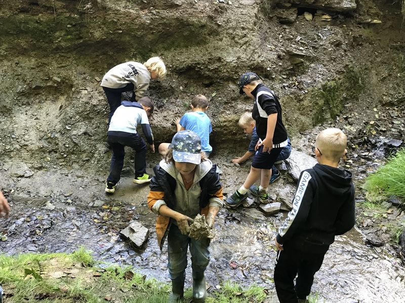 Am Ziel der Wanderung angekommen, wurde der Reichelsteiner Bach für die Kinder schnell zu einem Abenteuerspielplatz wie er schöner nicht hätte sein können. Mit großer Leidenschaft und Ausdauer wurden Brücken aus Steinen ins Bachbett gelegt und mit selbstabgebautem Lehm verfugt. Doch auch die Kinder, denen der Sinn nicht danach stand, den Bach zu entdecken, fanden so viele Möglichkeiten miteinander zu spielen, dass der Aufbruch zum Rückweg nach Dahlheim vielen Kindern zu früh kam.